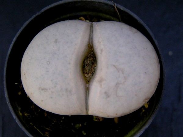 Priemer 40 mm, výška 40 mm, stonka je sivasté, dvojlist je veľký, pekný druh. Viac informácie a pestovanie na: kaktusyfabian.webnode.sk/news/lithops-kvitnuce-kamienky-/